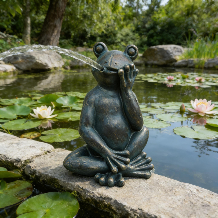 Does your garden have a lively pond? This spouting fountain is specifically designed for it. Place it at the edge of your pond or right in the center, and watch as it puckers its lips to spout a gentle stream of water—adding a touch of playful charm to your pondscape.
